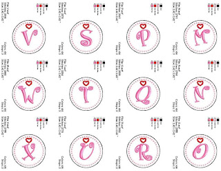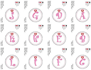 These are really cute tags that attach to gifts, bags or luggage. The letters may also be used in another project, with or without the hearts.